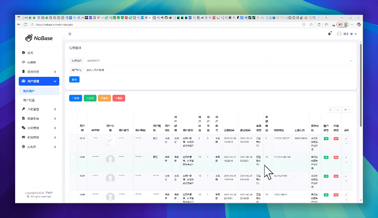 可以对用户进行删除、禁用、启用、修改信息等操作。